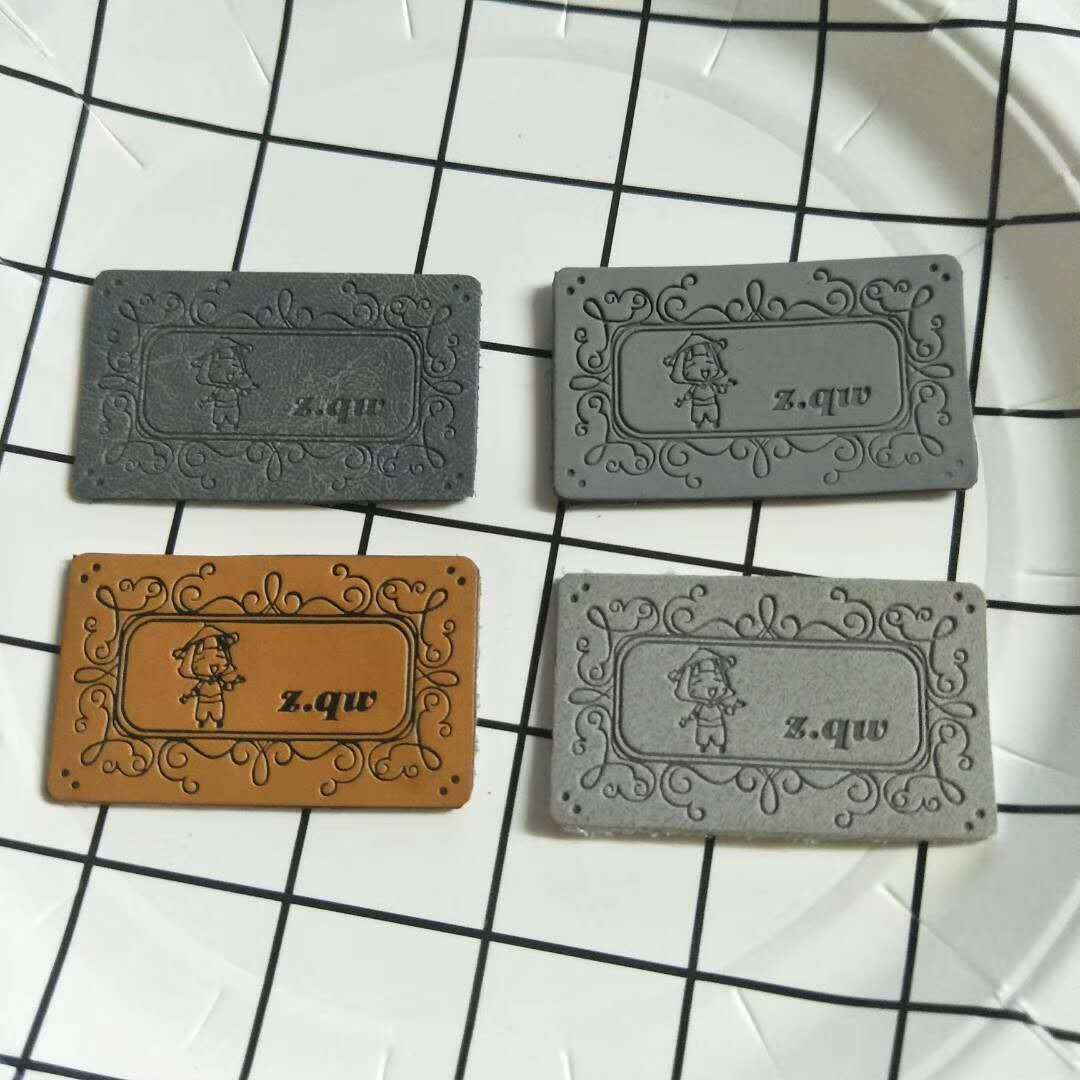 厂家供应 pu皮压花小皮牌皮标热压 牛仔裤箱包牛皮领标油边加工
