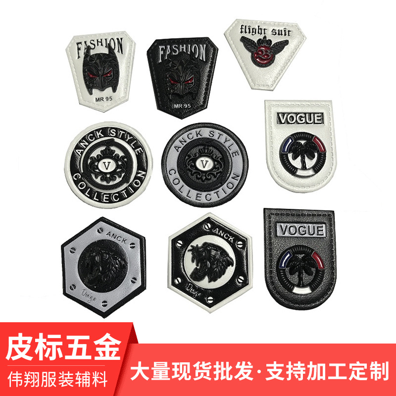 大量现货PU印花皮标 服装辅料硅胶 服饰徽章 服饰配饰标牌