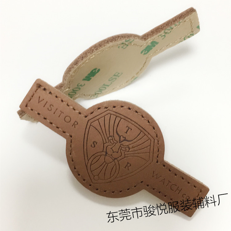 热压,使其凹凸有致,且立体效果明显;可经强力拉扯,洗水,不掉色,不变形。皮牌材质使用有真皮、仿皮,其中,PU仿皮也叫压边皮革,经济实惠,成本低,图案LOGO印刷工艺可省略,直接高温热压出所需的品牌LOGO凹凸变色的效果。 东莞骏悦服装辅料厂提供定制东莞PU皮牌,牛仔裤皮牌,电压皮牌皮标。皮牌材质有真皮(牛皮、羊皮、猪皮)、仿皮/人造革(PU革、PVC革),同时,也分为数种材质厚度、颜色、纹路、软硬度。广泛使用于牛仔裤,外套,休闲服装,箱包,皮带,礼品等产品;主要工艺为丝印、电压或热压,比如用于牛仔裤的真皮牌,可先印上产品LOGO,再经过高温