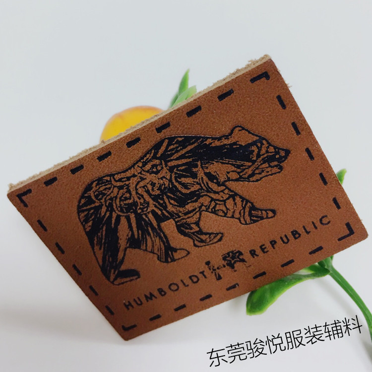 热压,使其凹凸有致,且立体效果明显;可经强力拉扯,洗水,不掉色,不变形。皮牌材质使用有真皮、仿皮,其中,PU仿皮也叫压边皮革,经济实惠,成本低,图案LOGO印刷工艺可省略,直接高温热压出所需的品牌LOGO凹凸变色的效果。 东莞骏悦服装辅料厂提供定制东莞PU皮牌,牛仔裤皮牌,电压皮牌皮标。皮牌材质有真皮(牛皮、羊皮、猪皮)、仿皮/人造革(PU革、PVC革),同时,也分为数种材质厚度、颜色、纹路、软硬度。广泛使用于牛仔裤,外套,休闲服装,箱包,皮带,礼品等产品;主要工艺为丝印、电压或热压,比如用于牛仔裤的真皮牌,可先印上产品LOGO,再经过高温