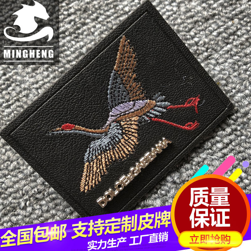 厂家定作LOGO绣花五金皮标印压油边服装牛仔裤皮牌来样设计