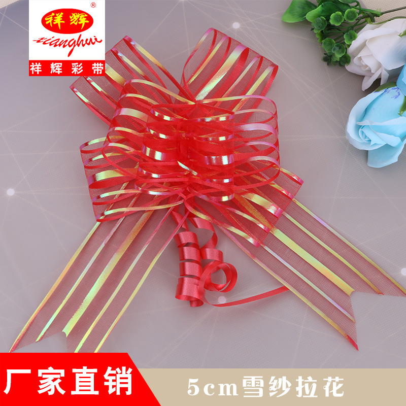 厂家批发5cm雪纱手拉花结婚婚车懒人拉花一拉成型蝴蝶结绑花扎花