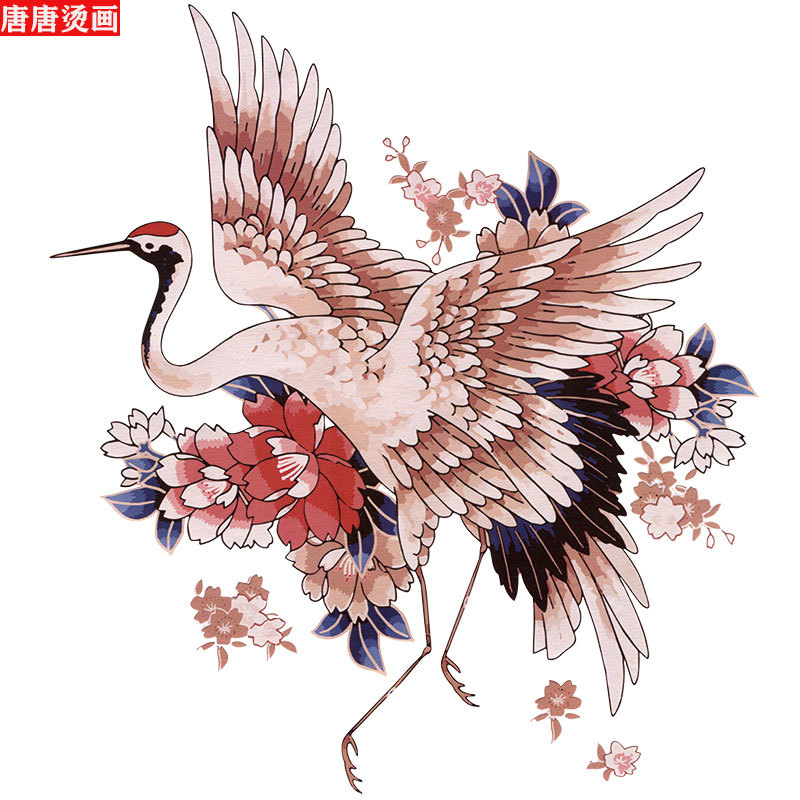 中国风仙鹤服装服饰贴花t恤胶片印花卫衣烫画 热转印柯式烫画图案