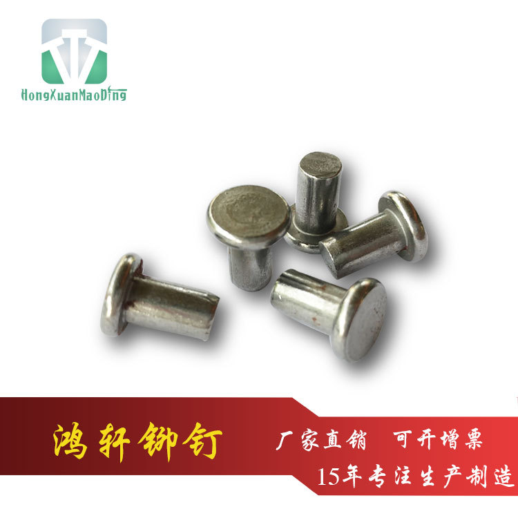 由于每个客户都是根据自己的产品来定制不同材质及规格的铆钉,所以我们一般不备库存,如需订制,需提供图纸或样品加工。如果是次使用铆钉,对铆钉不是很了解,不知道该选用怎样的铆钉,也可以提供产品的材质,用途,产品的孔直径及厚度,我们根据实际情况建议选用铆钉的种类。