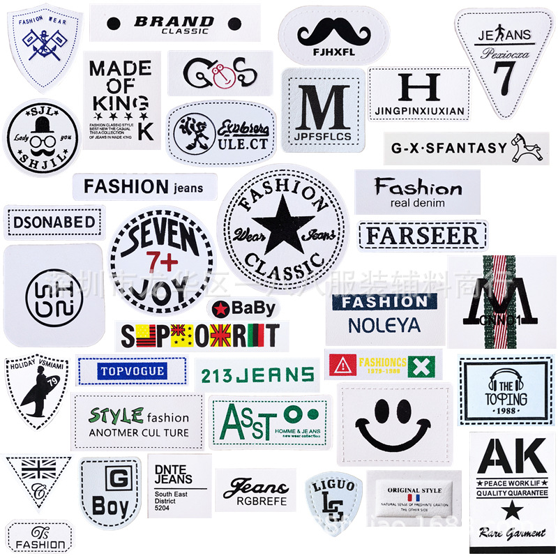 白色皮标笑脸五角图案裤子装饰商标徽章鞋子帽子包包服装童装辅料