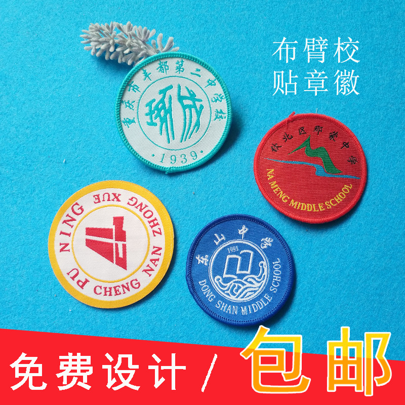 幼儿园园标 中学小学校徽园徽名字布贴 校服刺绣圆标肩章胸标