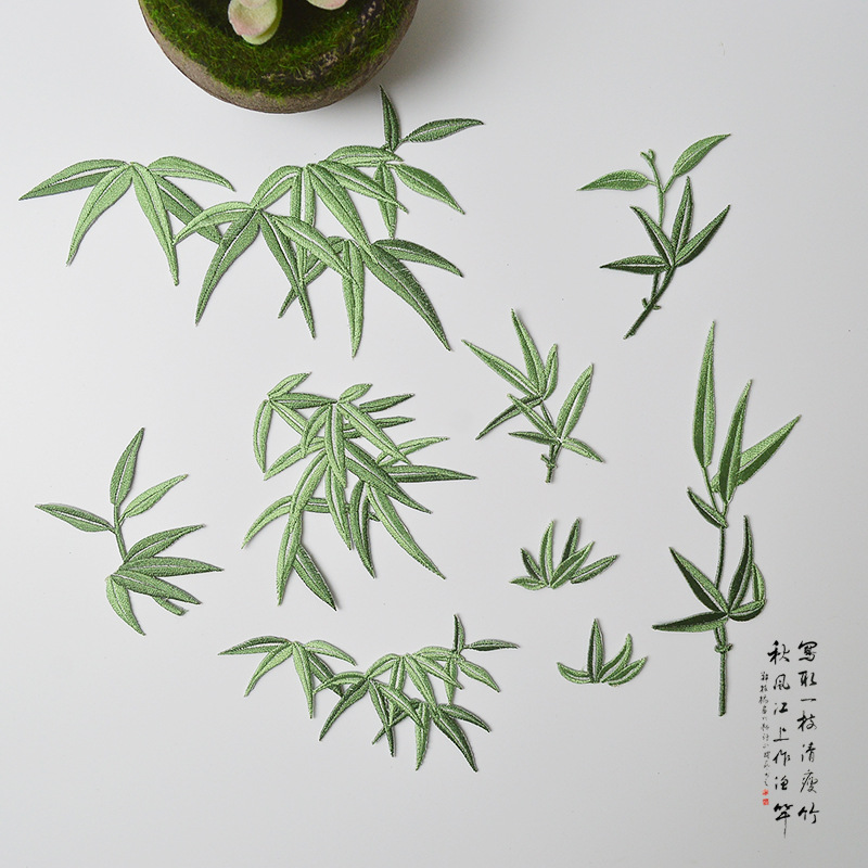 精致竹子竹叶布贴衣服贴补丁贴刺绣汉服礼服功夫服旗袍中国风装饰