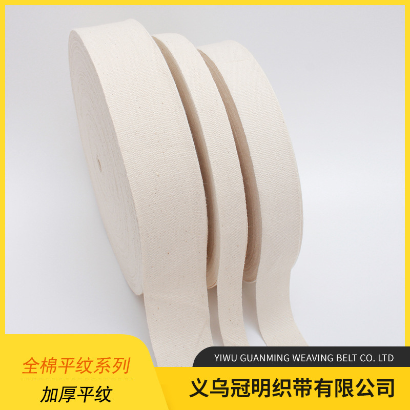 产品说明:这款是全棉平纹织带,也叫加厚平纹带 粗平纹,适用于箱包包边,印刷制作商标,服装辅料,瘦身绑腿等.