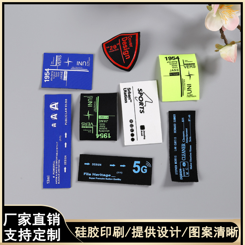 厂家批发logo定 制 硅胶印刷烫标标签胸章 主唛侧标水洗标辅料