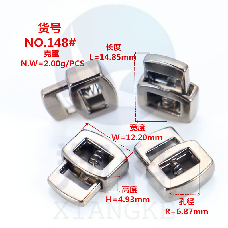 服装纽扣弹簧扣 金属锌合金方形有眼纽扣吊钟 厂家供应金属弹簧扣
