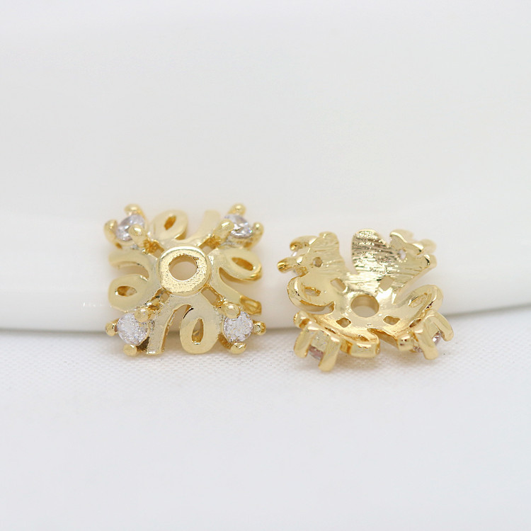 diy手工串珠饰品制作珠托手链配件镶锆石镀金中国结花托花帽批发