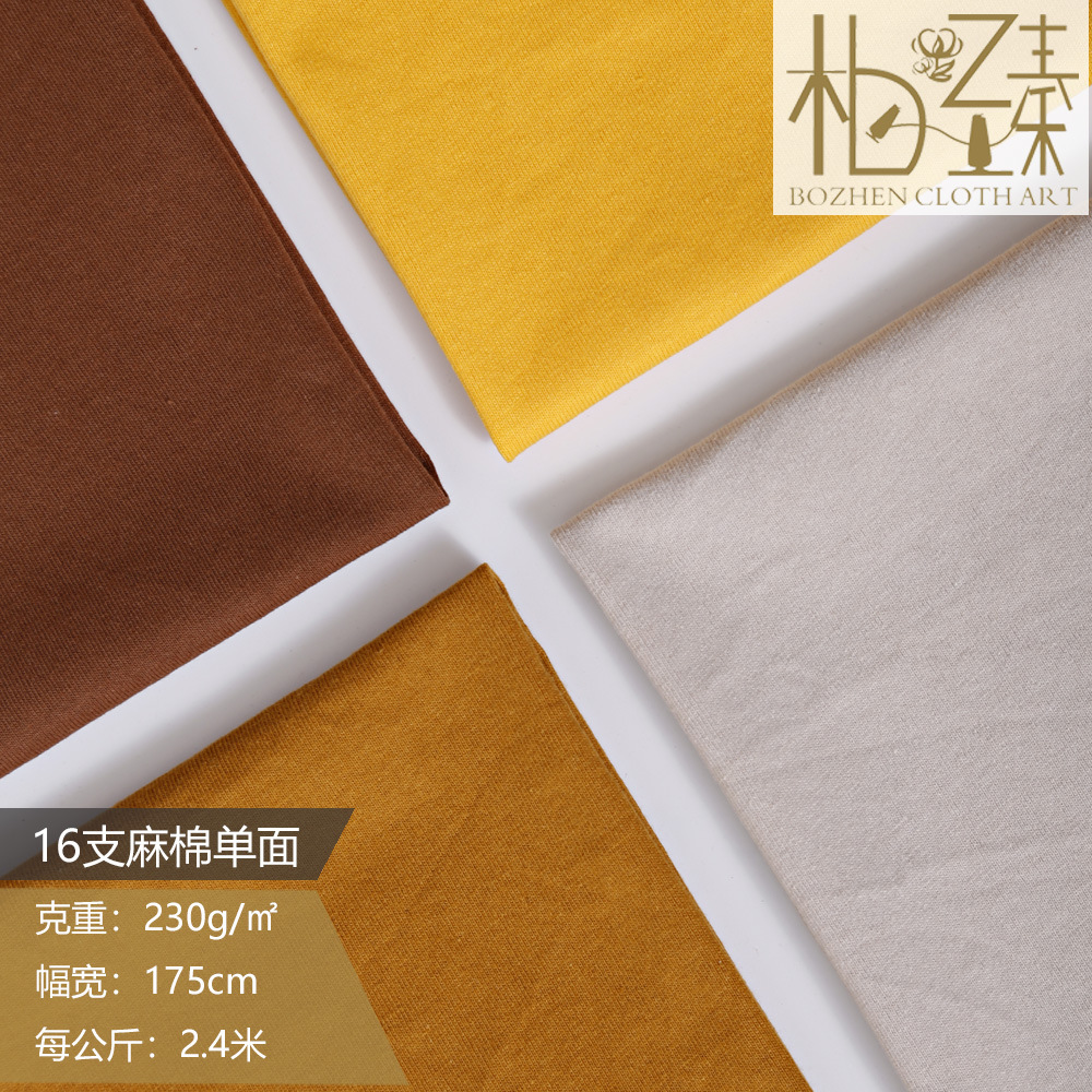 春夏16支单面平纹麻棉品质纯棉布料230克全棉汗布针织面料