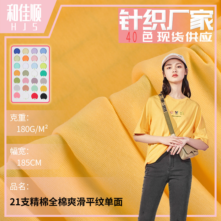 现货批发21S支爽滑棉平纹 棉单面 180g纯棉T恤面料 针织全棉汗布