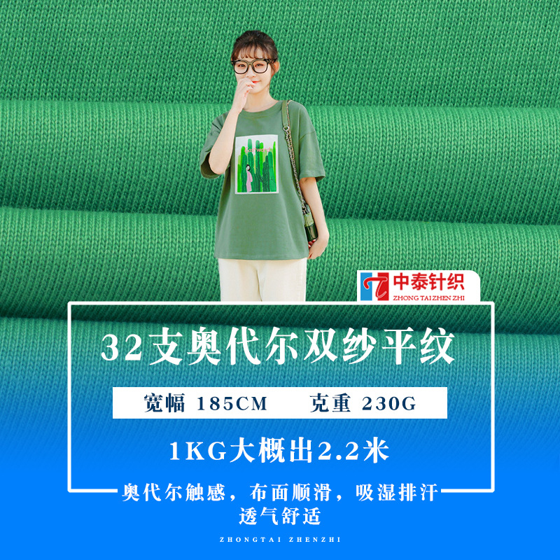 中泰现货潮流BV绿32支双纱奥代尔棉针织纯棉平纹T恤面料 全棉汗布