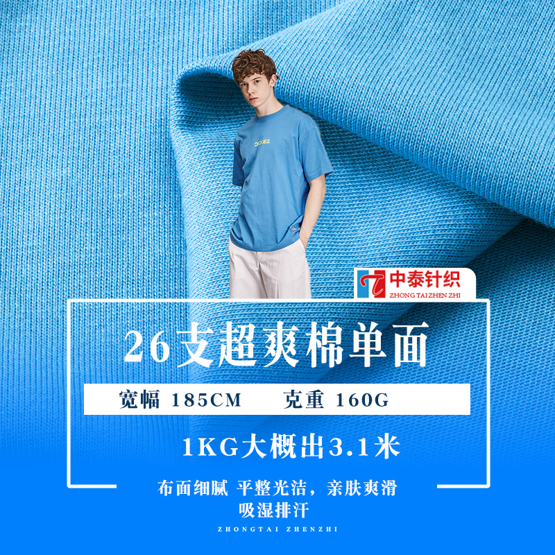 中泰现货26s支爽滑棉 160g夏季超爽棉单面平纹纯棉汗布T恤面料