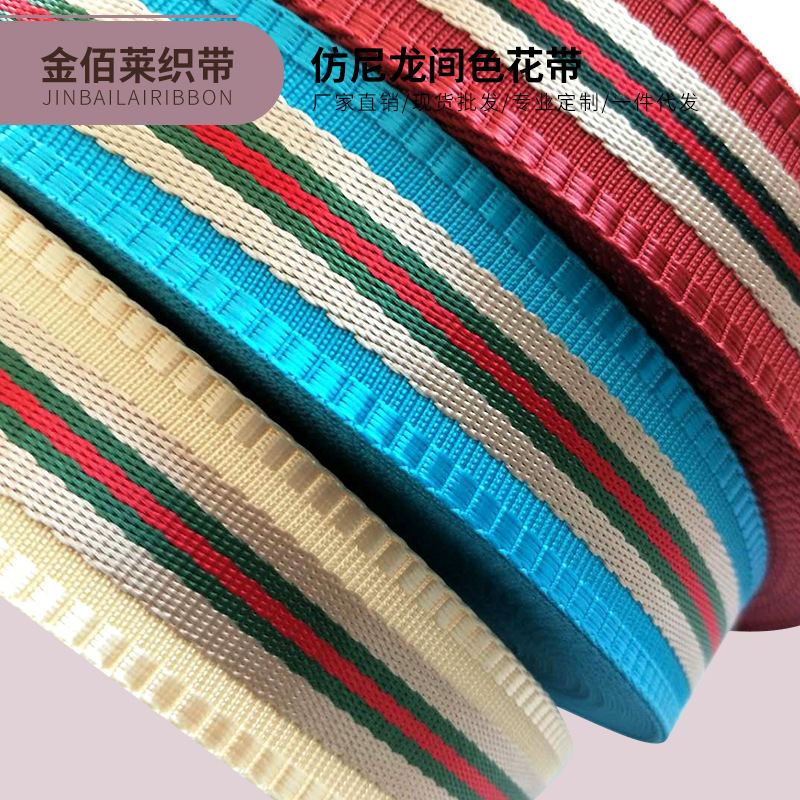 织带现货 厂家批发3.8cm 3.0cm仿尼龙织带间色花带批发