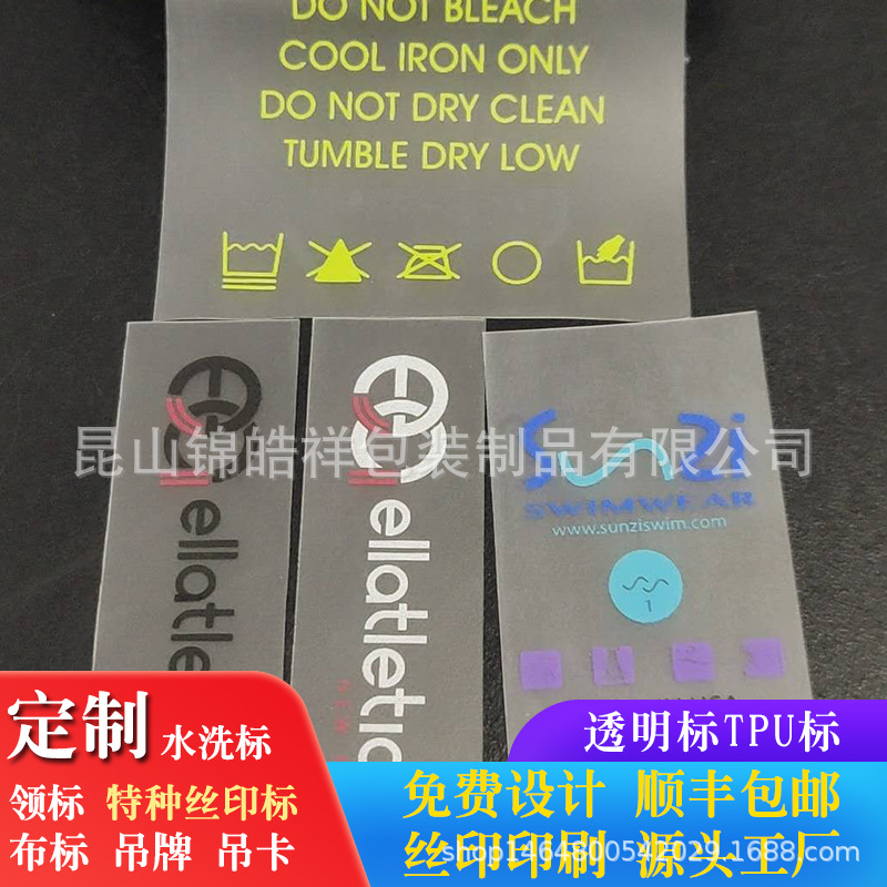 服饰洗水标 TPU透明胶片服装水洗唛 内衣塑料商标TPU材质印刷洗标