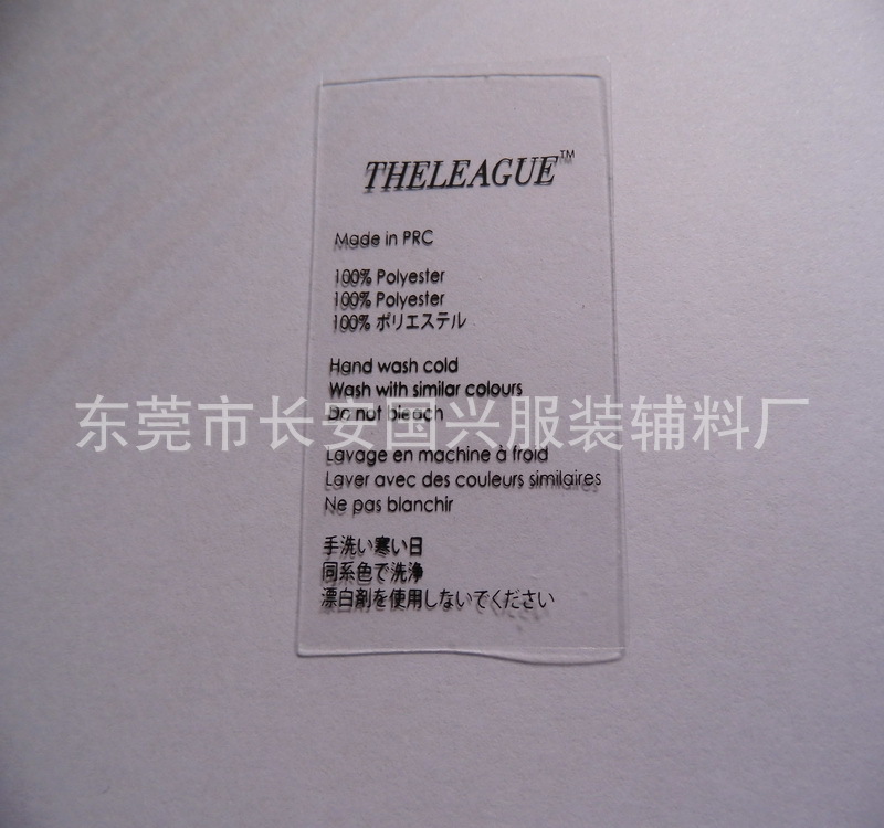 国兴商标厂从事TPU标签丝印,TPU商标丝印行业十多余年,“技术 ,质量保证。”采用的国际进口全环保材料生产制作,印刷效果立体美观,牢度好,洗水不退色。服务快捷方便,价格实惠!国兴发展至今,秉着做专做精的原则。现拥有2000平米的生产车间,配备有十多条大小不等的丝印生产线,有着10多位具有多年经验的丝印师傅,从菲林制版到丝印成品一条龙服务。丝印技术精湛,实力雄厚,工厂坐落在东莞,我们同众多知名品牌有着长期合作关系,本厂生产的TPU EVA PVC商标远销国内外,受到各国服装厂的好评,本厂质量为本,客户至上,欢迎各界前来咨询订购