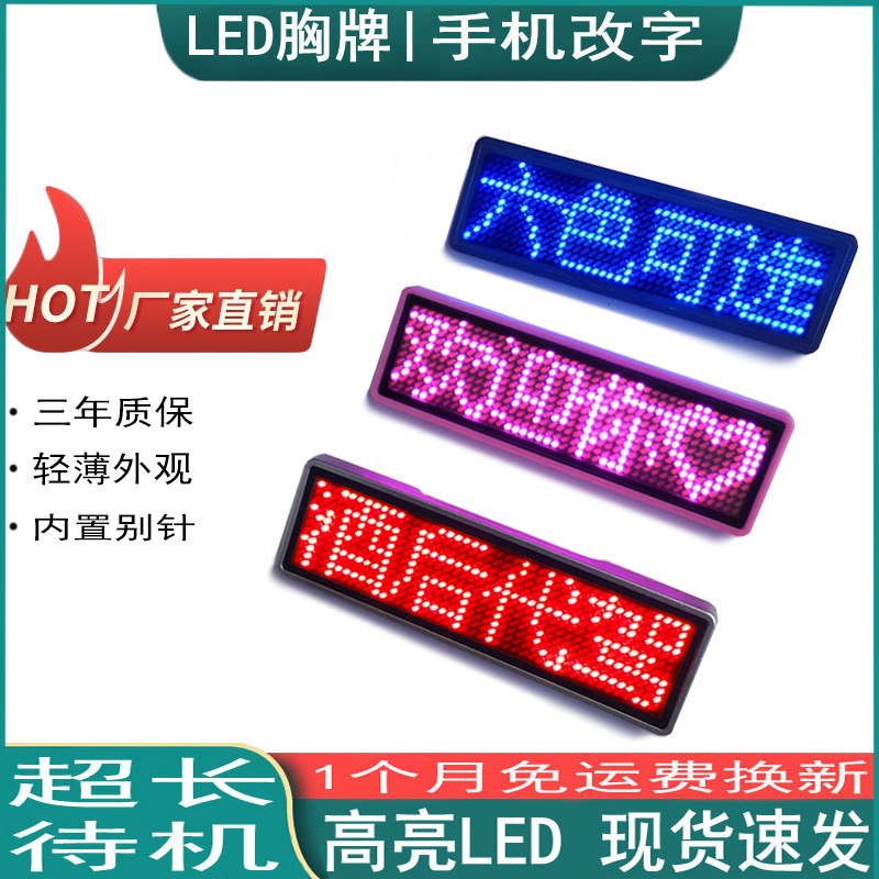 led胸牌工牌别针式电子胸卡充电发光工作号牌代驾灯 改字