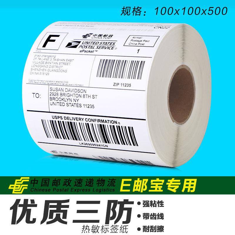 EUB/ebay/速卖通/E邮宝专用不干胶热敏标签纸100*100*500电子面单