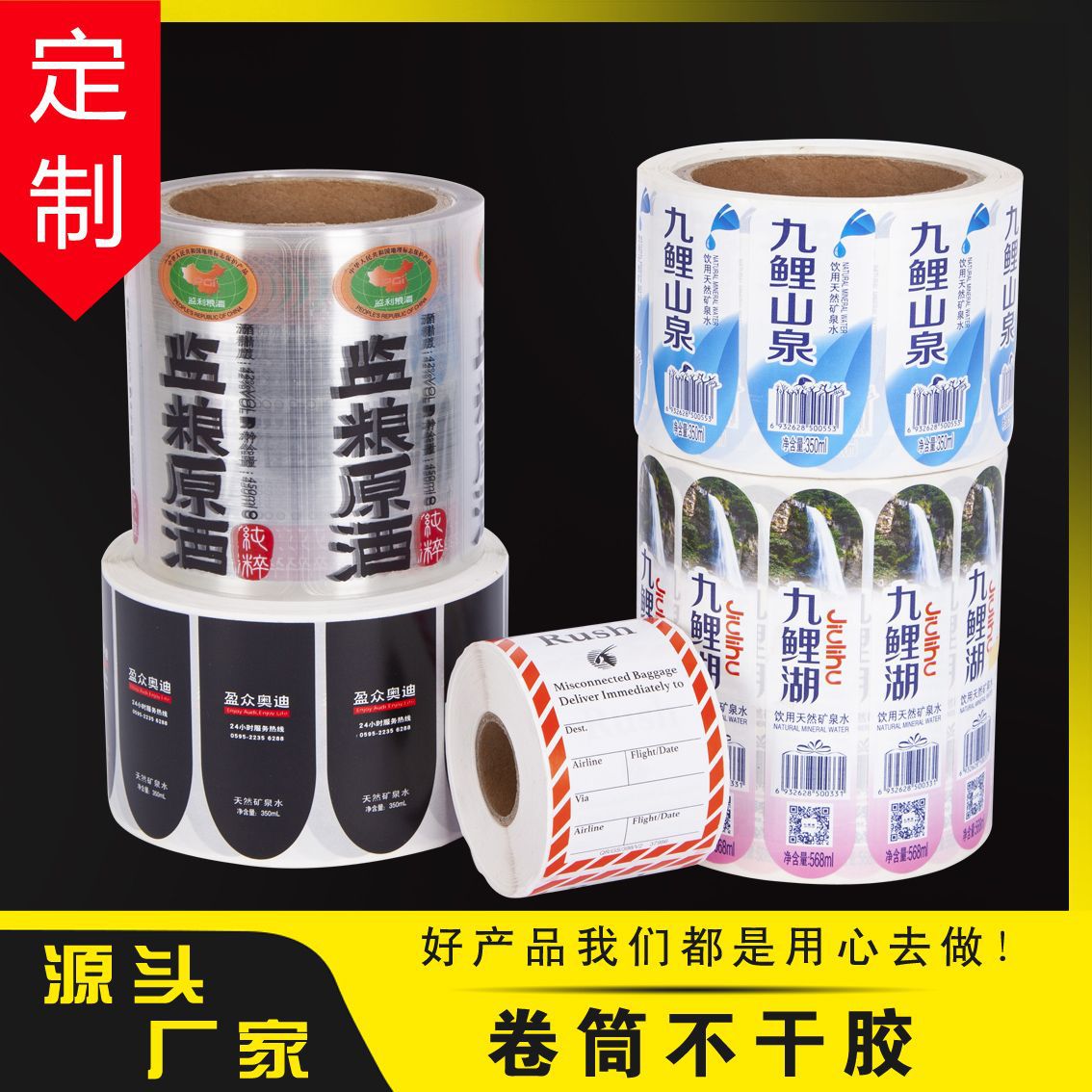 厂家直销不干胶珠光膜彩色矿泉水标签 PET透明不干胶标签自动贴标