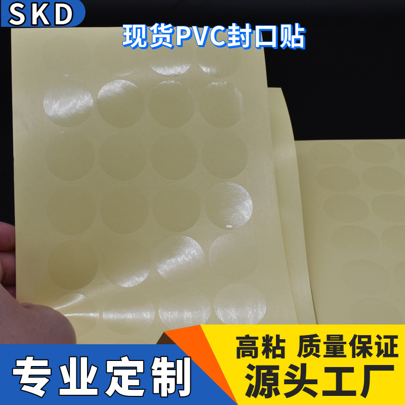 现货透明加厚圆形封口贴 PVC强粘不干胶标签 包装彩盒透明封口胶