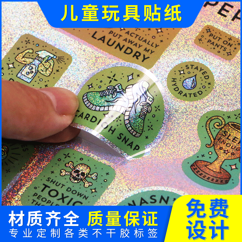 不干胶标签定制儿童玩具贴纸透明龙不干胶卡通动漫彩色立体贴纸