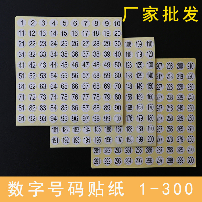 数字号码贴纸尺码标签 圆形序号编号工号不干胶标签贴纸1-100-300