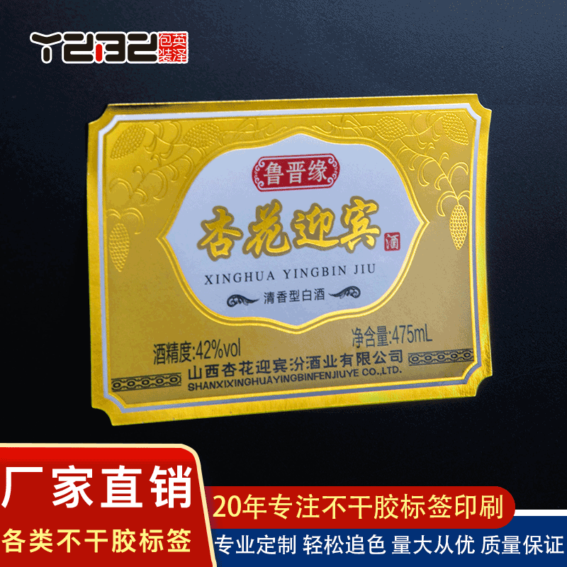 厂家定制铜版纸白酒不干胶标签纸 食品饮料酒瓶贴不干胶标签贴纸