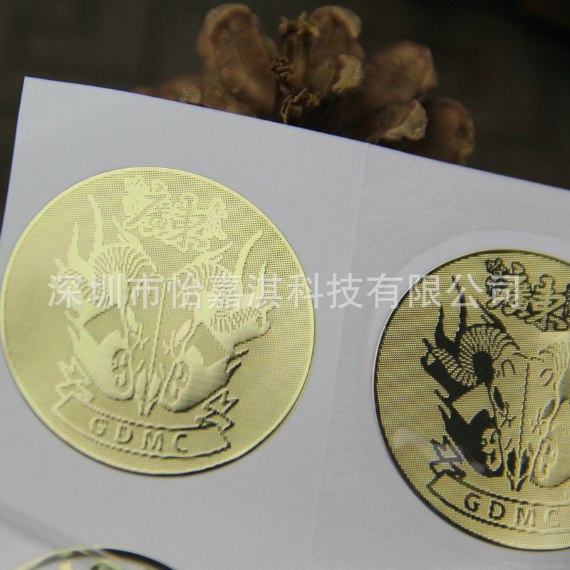 彩色印刷PVC标签 烫金凹凸LOGO不干胶标贴 设计金属质感立体贴纸