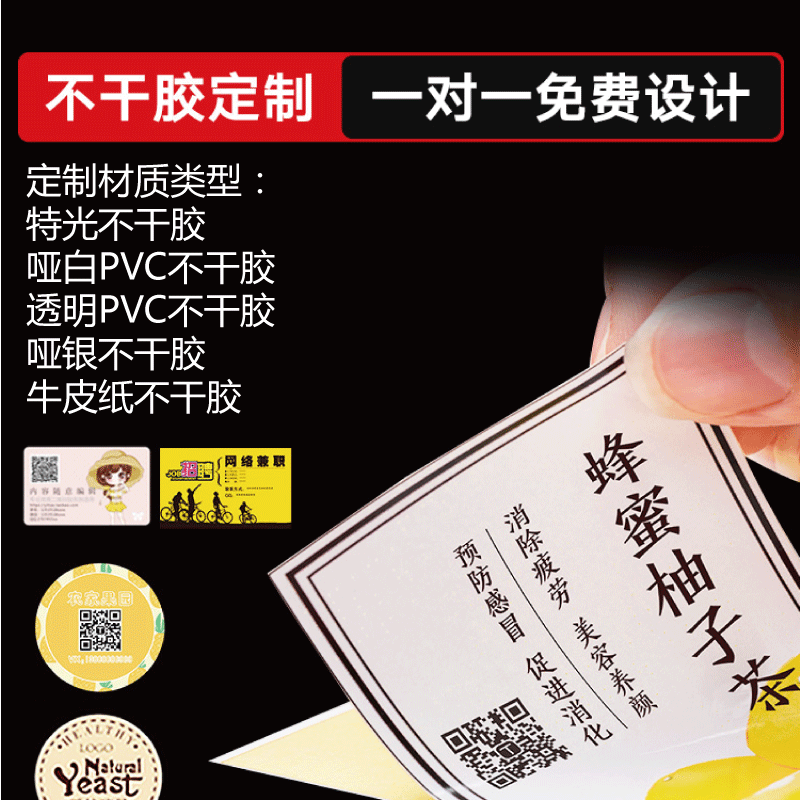 不干胶标签同传统的标签相比,具有不用刷胶、不用浆糊、不用蘸水、 无污染、节省贴标时间等优点,方便快捷。不干胶标签通常在标签联动机上印刷加工,多工序一次完成,如图文印刷、 模切、排废、切张和复卷等。有:RoHS环保标、酒 类、食品标签、环保标签、玩具彩贴、静电膜、雷射膜、防伪标贴、夹心双面胶、铝箔、耐高温防晒贴纸、电脑孔贴纸 、电脑条码贴纸、流水号码贴纸、可移贴纸、服装卷式打印吊牌、唛头、纤维布标、PET、PE、PVC标签、透明不干胶、 易碎纸标签、拉丝金/银不干胶、合成纸不干胶、洗发水、日用、化工、化妆品、医药、电池、电子电器贴、特多龙不 干胶、彩色不干胶贴纸 产品标贴等。(迅彩包装) |