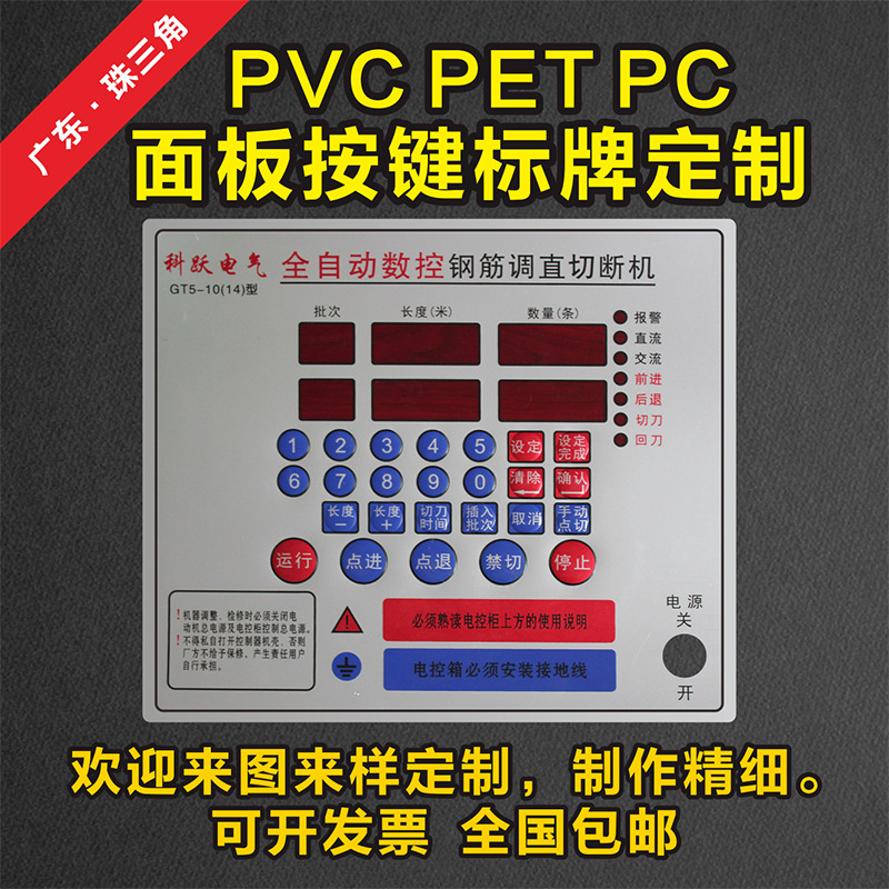定做透明磨砂PVC面板不干胶标签防水桌贴纸塑片按键膜机器警示牌