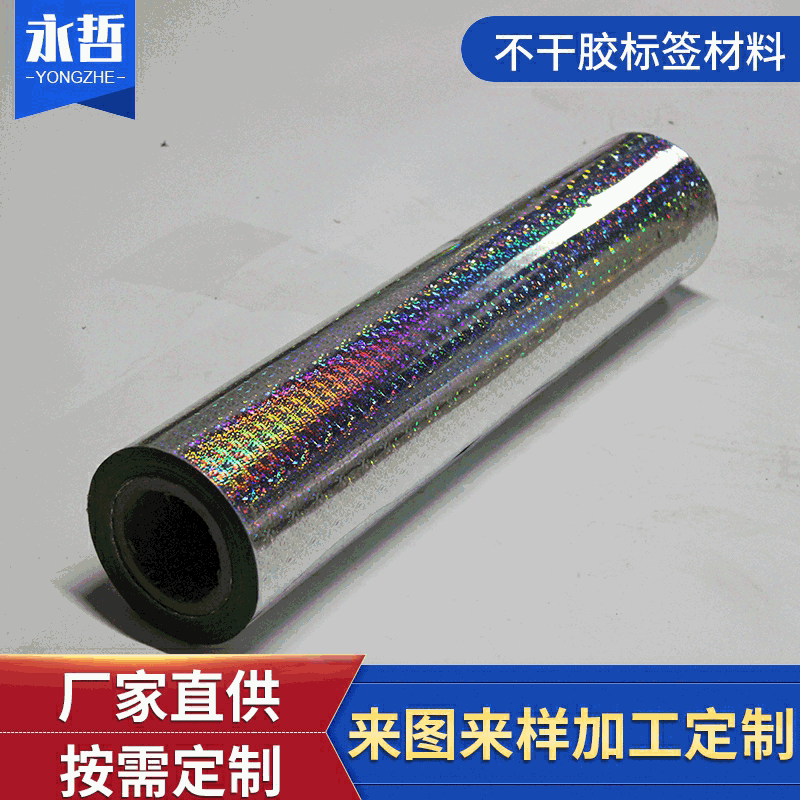 厂家供应镭射碎玻璃不干胶材料 可移PVC不干胶材料卷筒不干胶标签