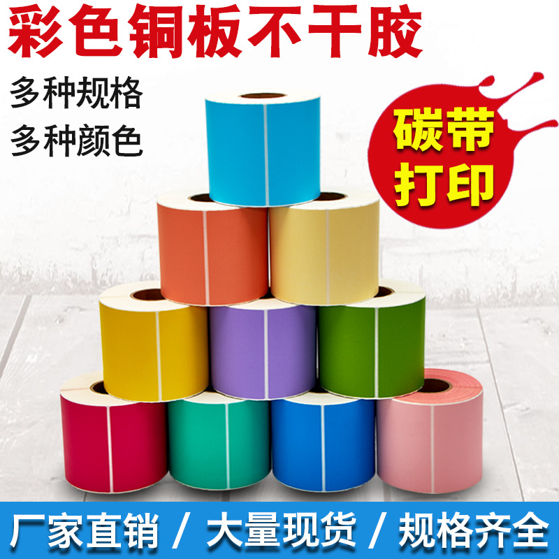 彩色不干胶标签纸铜板纸标签贴 红橙黄绿青蓝紫色卷筒条码纸