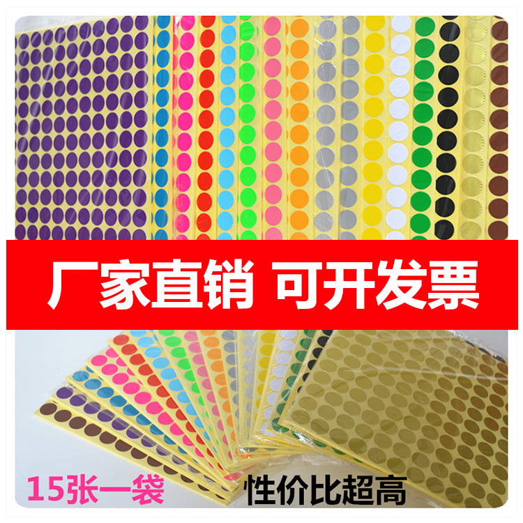 圆形标签贴 彩色不干胶圆点贴纸 彩色圆点标签 不同规格多色可选