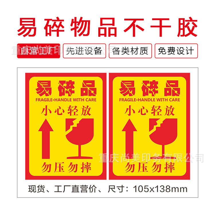 易碎品标签快递易碎警示不干胶红酒玻璃瓶标签贴纸快递外箱警示贴