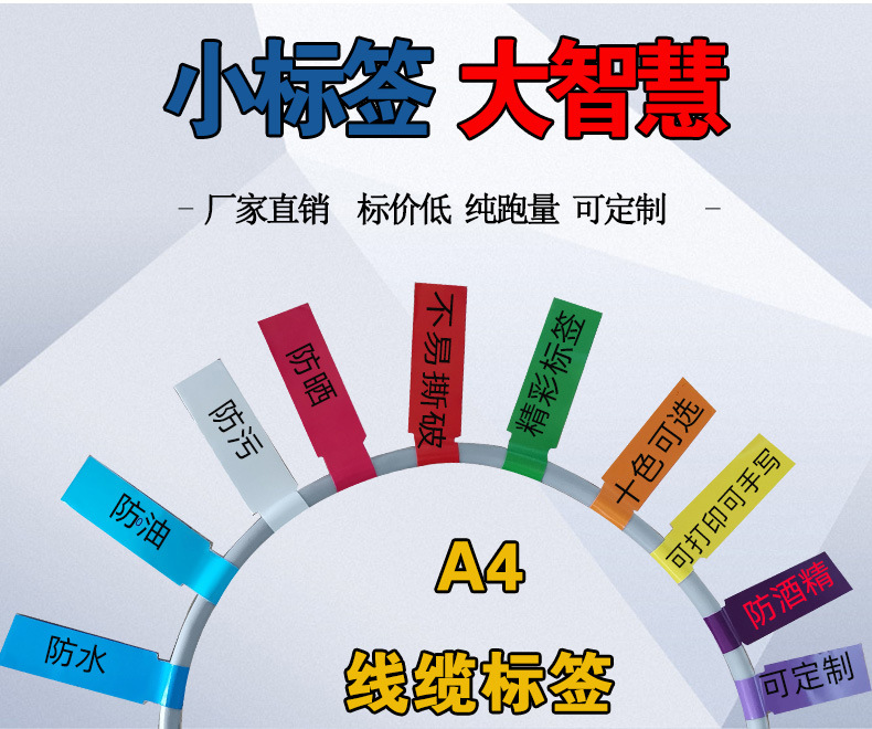 网线电线区分A4P型刀型彩色线缆标10色12色标签分装袋装