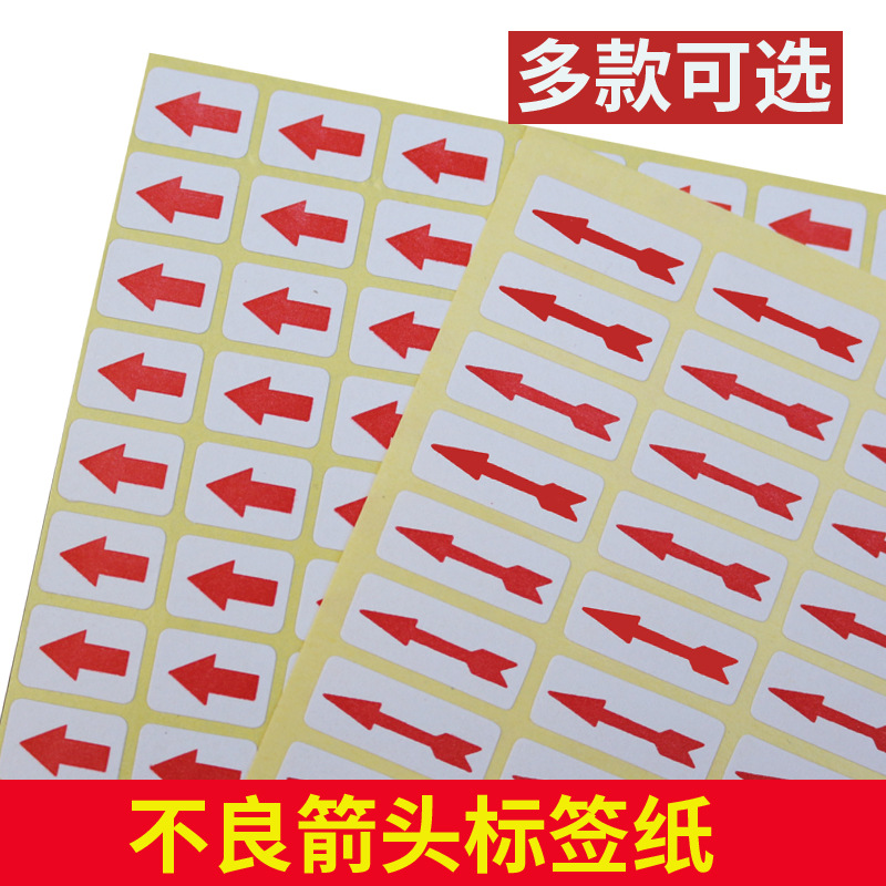 红色指示小箭头不干胶标签纸自粘次品不良品返修标记贴纸返工标贴