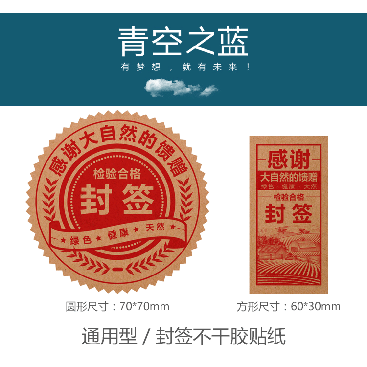 通用封签不干胶贴纸现货牛皮封口贴纸农产品标签合格证标签贴纸