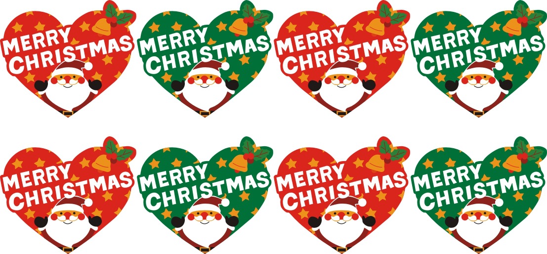 烘焙平口袋装饰贴纸圣诞节爱心形圣诞老人蓝绿款包装袋装饰贴纸