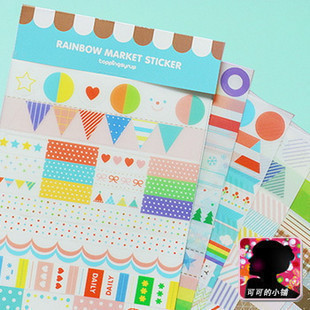 韩国wanna可爱透明贴纸标签目录 rainbow 6张入 蓝