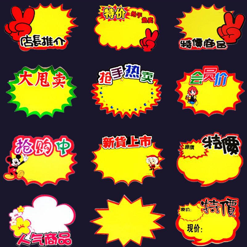 爆炸贴pop广告纸促销卡标价牌商品标签标价牌超市商家活动折扣牌