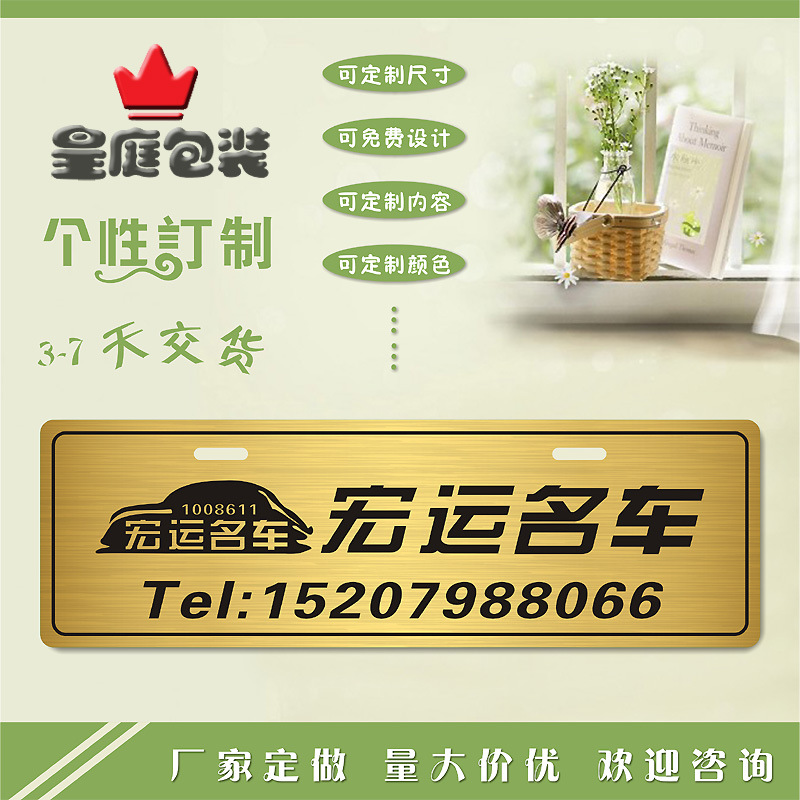人气SNBLOPVC定做 车展铭牌广告车牌架拉丝汽贸标牌车身贴不干胶