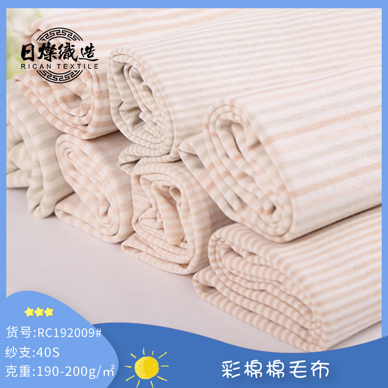 针织双面纯棉布料 A类有机彩棉棉毛布 五彩条儿童内衣面料