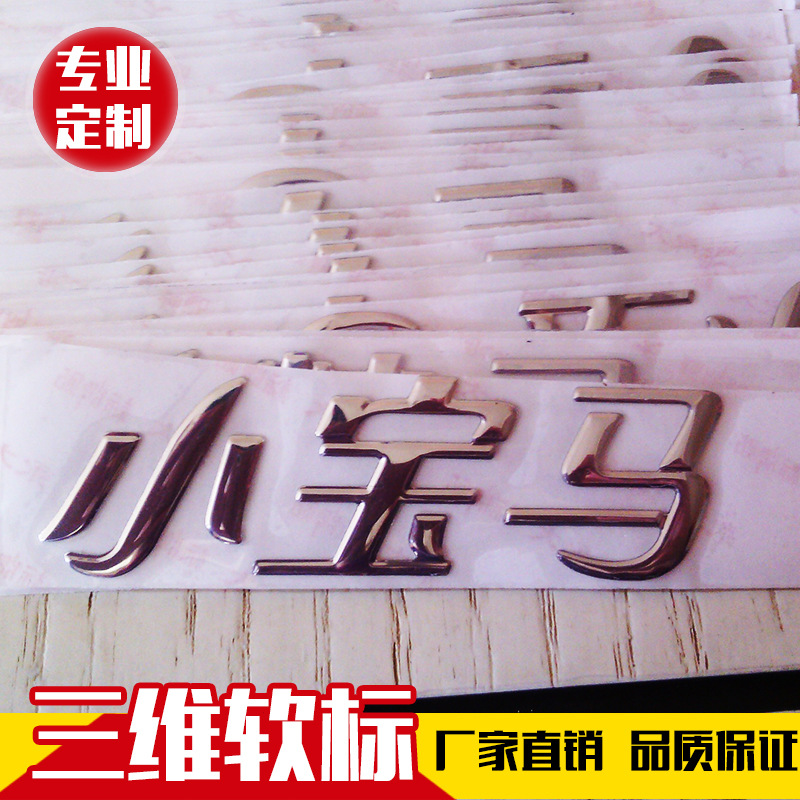 三维软标logo立体字 PVC电动车标牌3D字母酒标不干胶商标标签