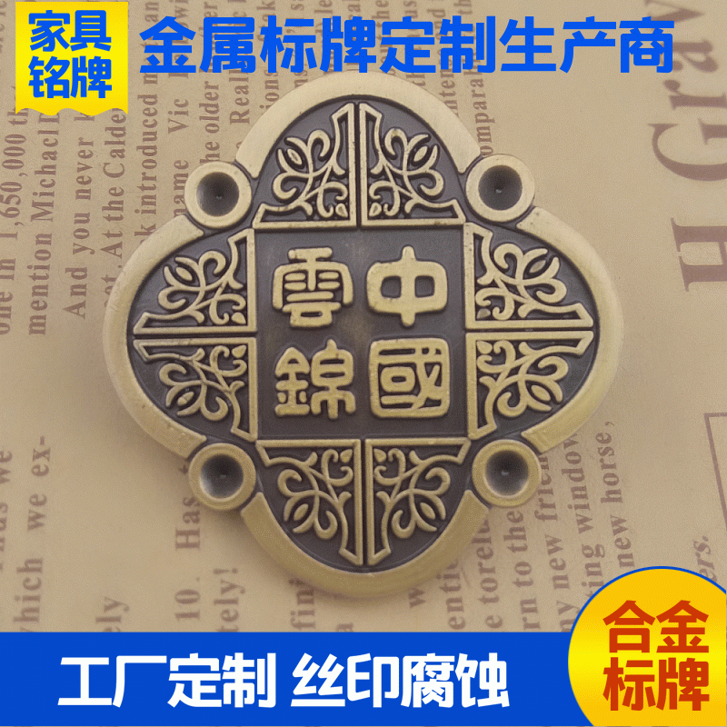本产品可采用铜,锌合金,铁,铅锡合金等金属材料来制作,表面抛光处理,可镀金,镀银,镀镍,镀古铜等电镀工艺,可按客户不同要求来制作。产品的规格,厚度都可按客户的要求来订做,只要你们提供样板或图稿即可。