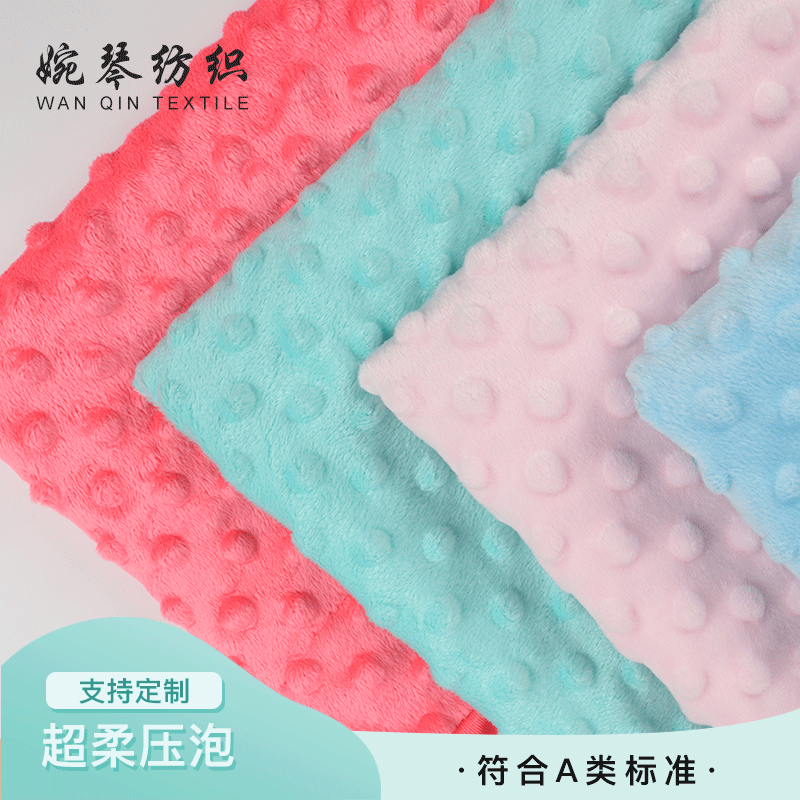 豆豆绒超柔压泡毛毯婴儿毯玩具布料 现货 水晶绒压泡面料短毛绒布