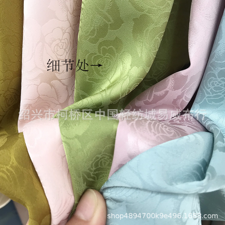 现货暗纹缎面提花面料 玫瑰仿真丝布料 汉服 吊带连衣裙 睡衣布料