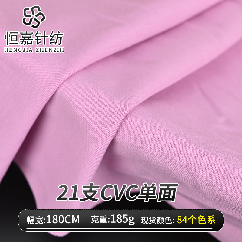 现货针织面料21支CVC单面汗布涤棉混纺平纹布短袖T恤打底衫TC布料