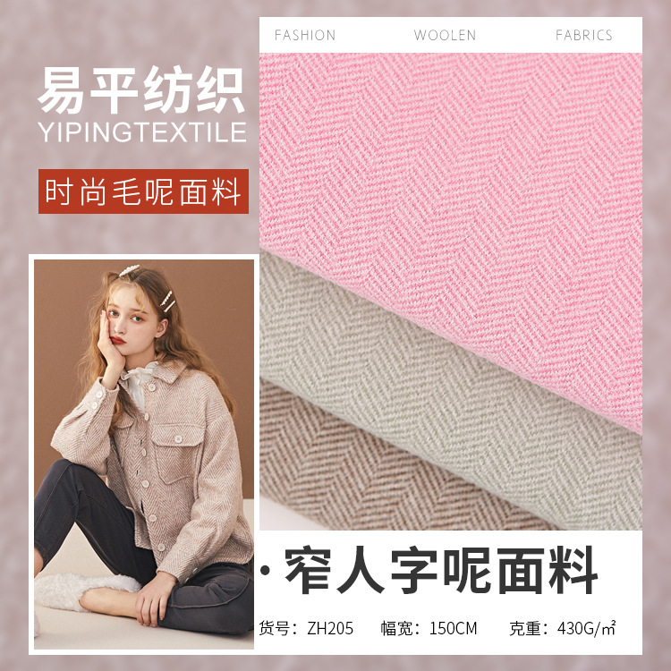 绍兴柯桥430窄人字毛 半精纺毛呢布料 时尚上衣外套面料 大量现货